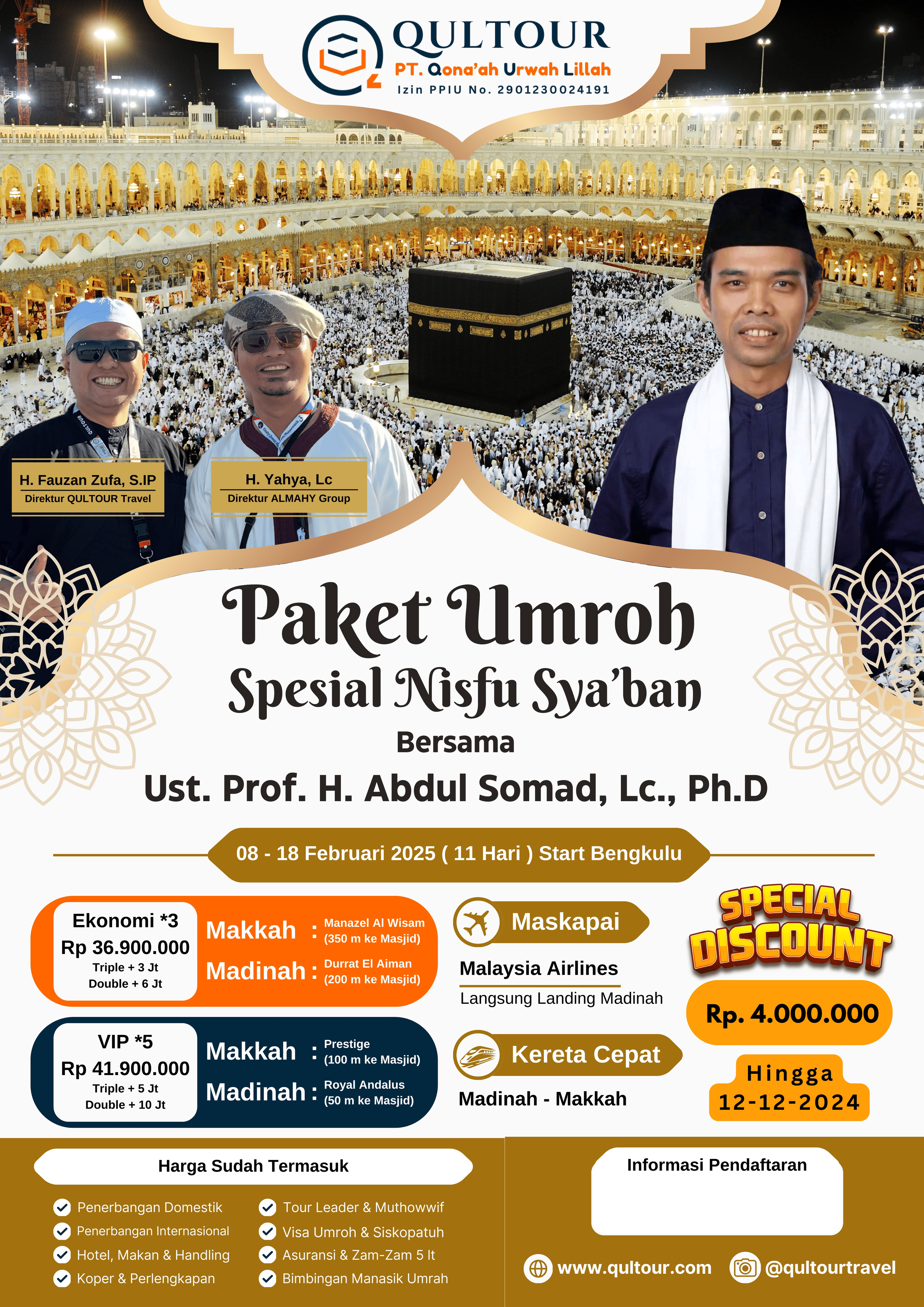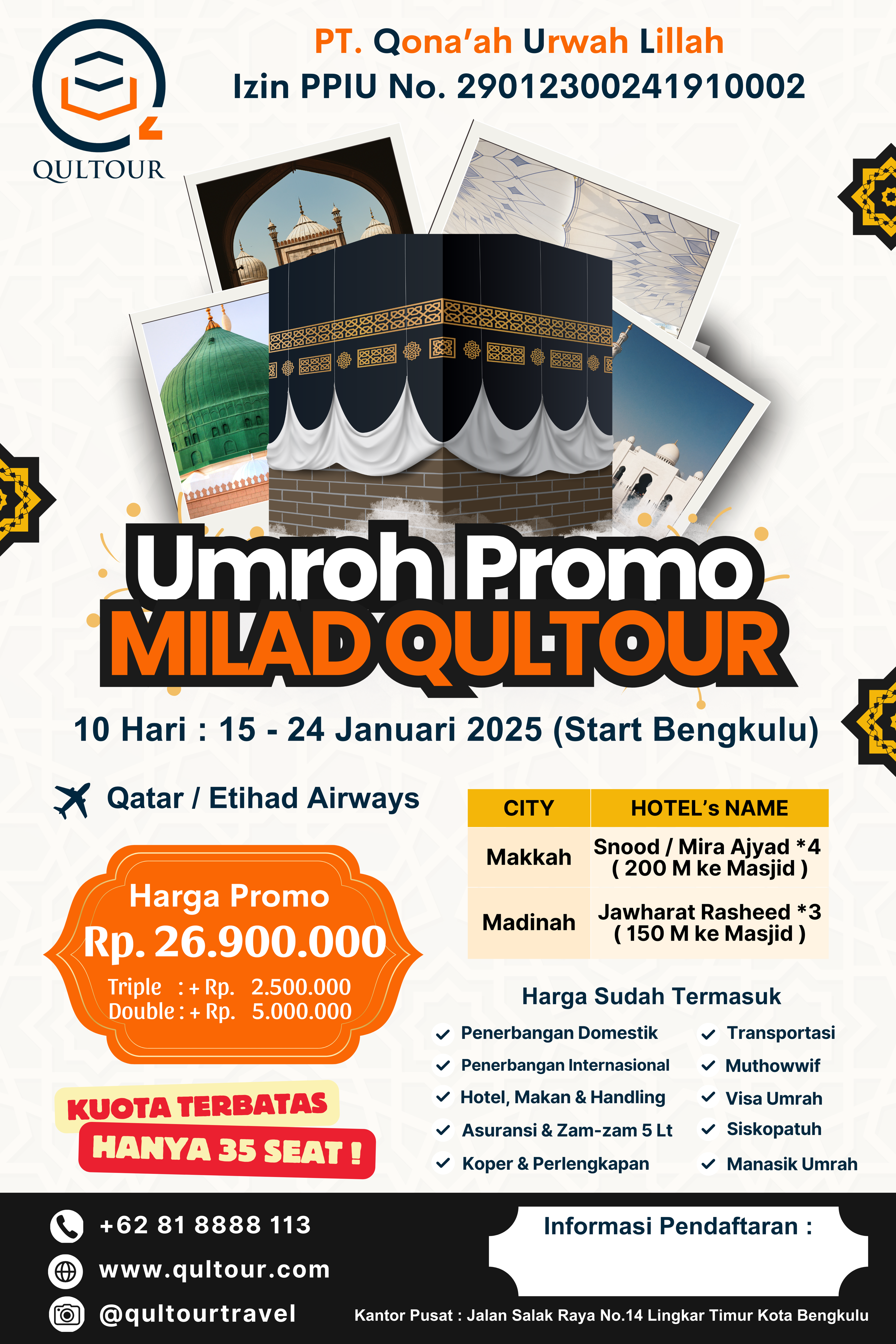 “Wisata halal bersama QULTOUR adalah pengalaman yang tidak terlupakan. Semua kebutuhan kami terpenuhi dengan baik. Terima kasih!”